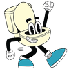 Animated toilet paper roll character with a happy face, arms, legs, and sneakers, raising one arm in a fist, with text that reads "Potty Mouth" on a blue background.